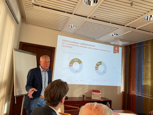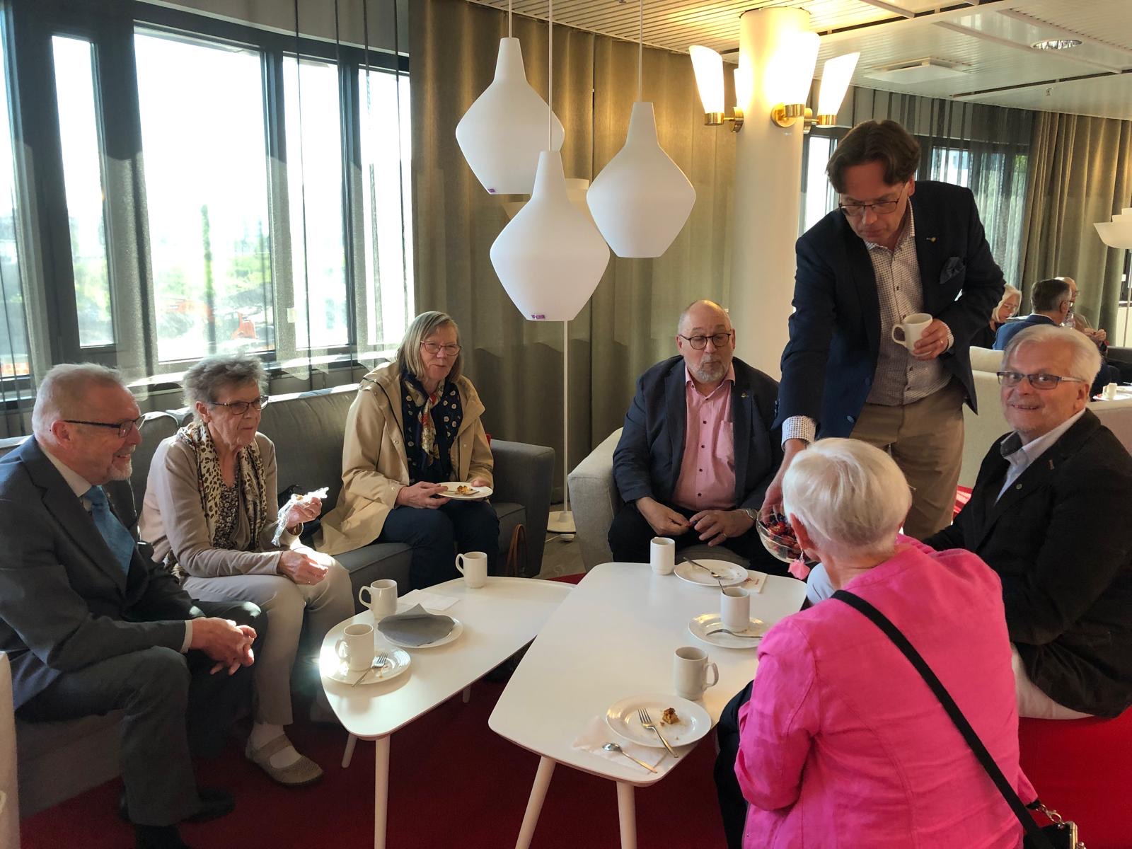 - Aluksi nautimme Saarioisten pääkonttorin oman keittiön valmistamia herkullisia suolaisia piirakoita. Visa-Matti huolehti vesitarjoilusta.