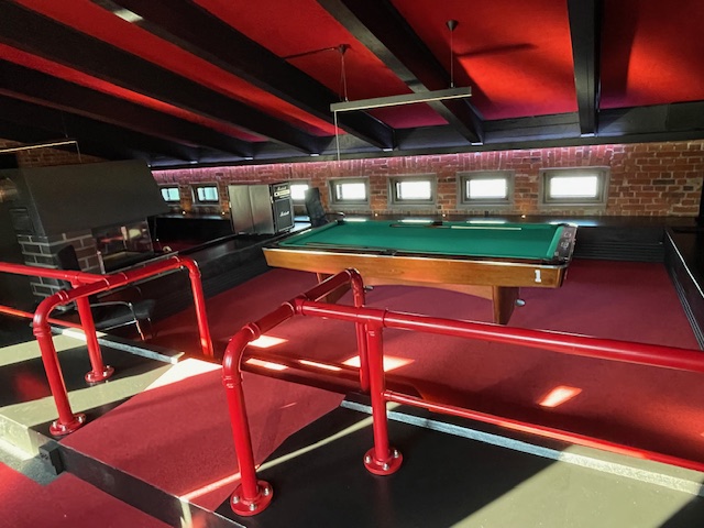 - Yläkerrassa pääsee iskemään biljardipalloja.