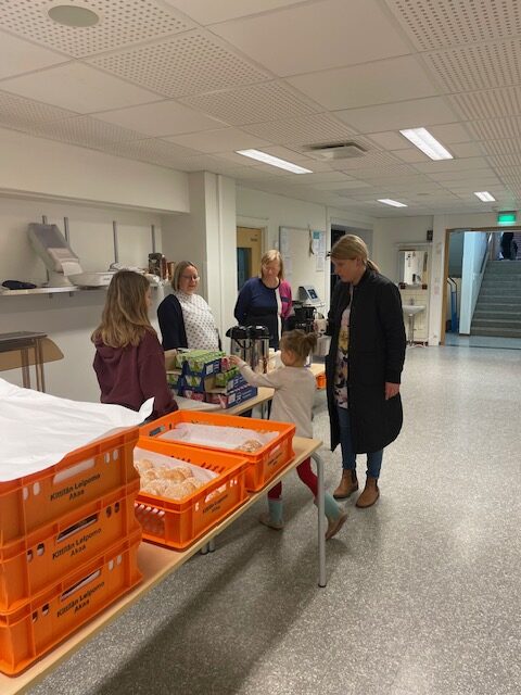 - Hilkka Rekolan johdolla tarjoiltiin munkkeja, pillimehua ja kahvia kävijöille.