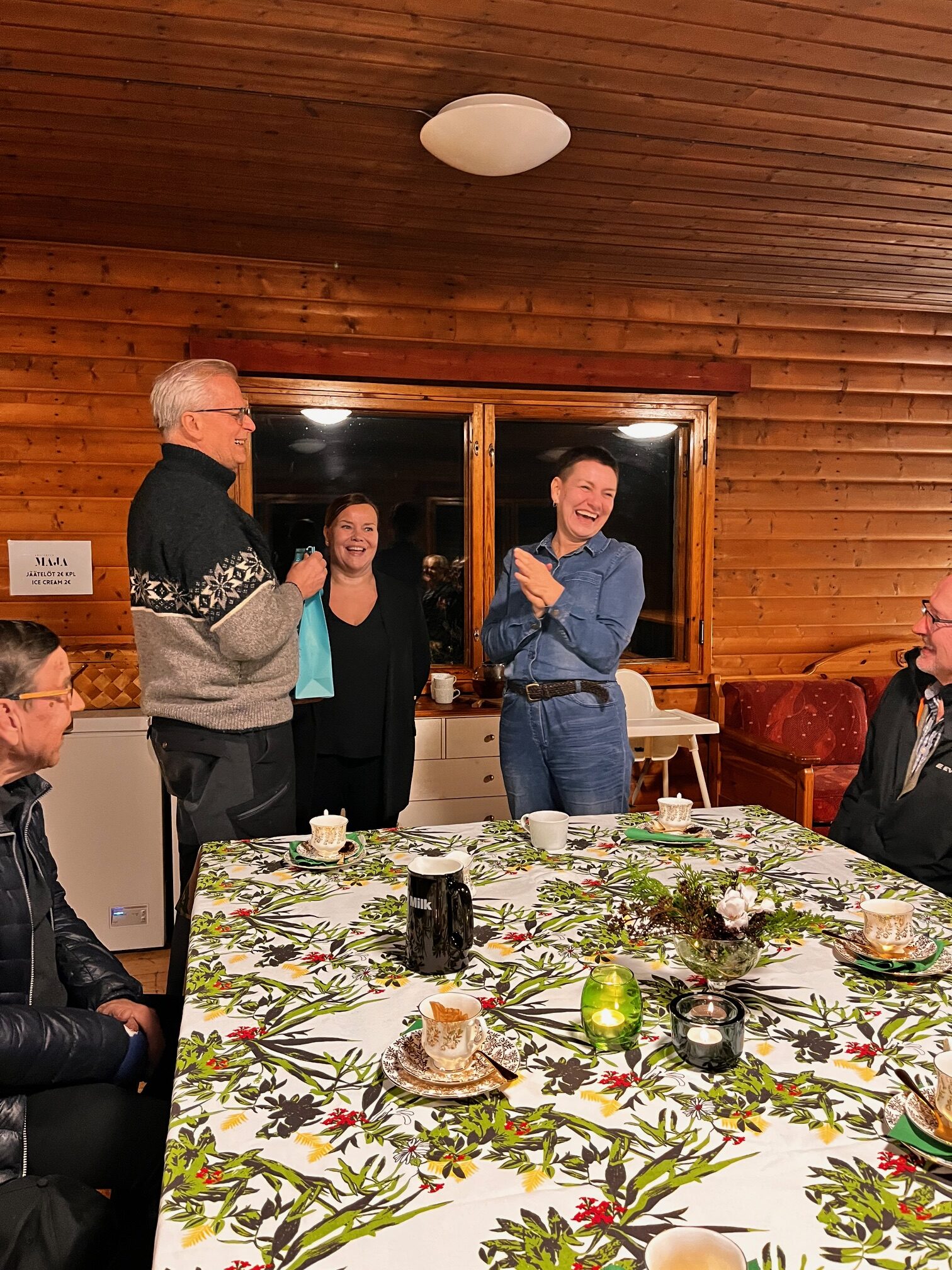 - Meille tarjottiin maittavat kahvit Hanskun äidin leipomien kuuluisien lihapiirakkoiden kera – kiitos!