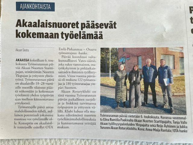 Akaan Rotaryklubi tukemassa 18-28 vuotiaiden nuorten työelämään tutustumista.