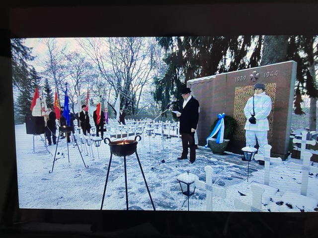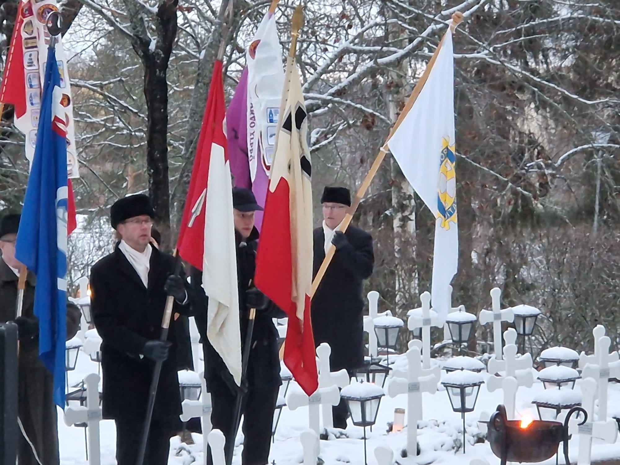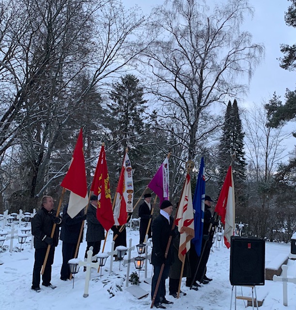 Itsenäisyyspäivänä Rotary-lippu Toijalan Sankarihaudan lippulinnassa. Lippua kantoi klubin presidentti Jukka Turunen.