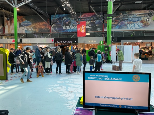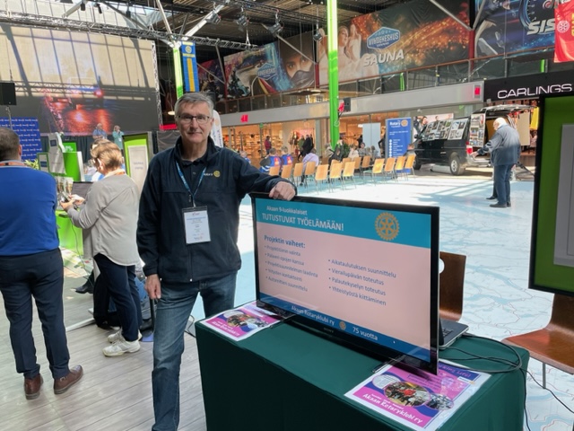Rotary-näyttelyyn oli 17 klubia järjestänyt esittelypisteen. Järjestelyt hoidettiin sotilaallisella täsmällisyydellä. Esittelyhenkilöstöömme kuuluivat Lea, Juha, Markku ja Jukka. Näyttelyn tarkoitus oli esitellä Rotary-toimintaa suurelle yleisölle ja toki rotarien välisen kanssakäymisen lisäämistä. Upea keväinen ilma ei IdeaParkkiin valtavan suuria kansanjoukkoja kerännyt. Ihmetystämme lisäsi ettemme juurikaan tavanneet/nähneet akaalaisia henkilöitä. Toki kaksi jäsenhankintalistallamme olevaa henkilöä tapasimme. Mukava kokemus ja klubimme esilläolo sai vastinetta. Kiitokset tiimille.