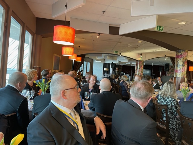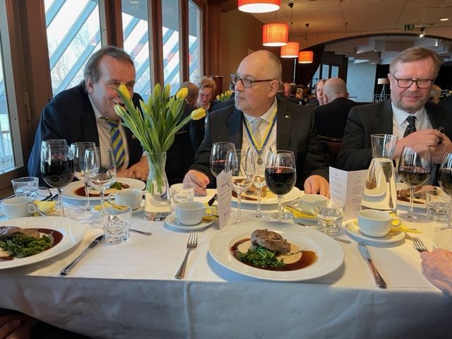 Näyttelyn jälkeen pieni huilitauko ja lähtö vitjat kaulassa Edeniin Governor´s ball:iin Juhan kanssa. Tapahtuma noudatteli perinteisiä malleja puheita, ruokaa, huomionosoituksia ja keskusteluja pääosin oman pöytäseurueen kanssa. Paikalla oli runsaasti vaihto-oppilaita, joille oli delegoitu juontotehtäviä. Kuulimme useita eri kieliä, eniten suomenkielellä. Puheita pitivät kuvernööri Esa Mäkinen, hänen kollegansa DG Arja D1385 (Pohj.Suomi) ja DG Peter D 2350 (Ruotsi, Tukholman alue). Esa Mäkinen jakoi eri huomionosoituksia, noteerasin säätiölahjoituksia yli 100 $/capita keränneille klubeille, kuvernöörin tärkeimmät avustajat kaudella sekä Ukrainan ambulanssiprojektin toteuttaneille.Totesimme Juhan kanssa illan päättyessä, että olimme viimeiset kotiinlähtijät!