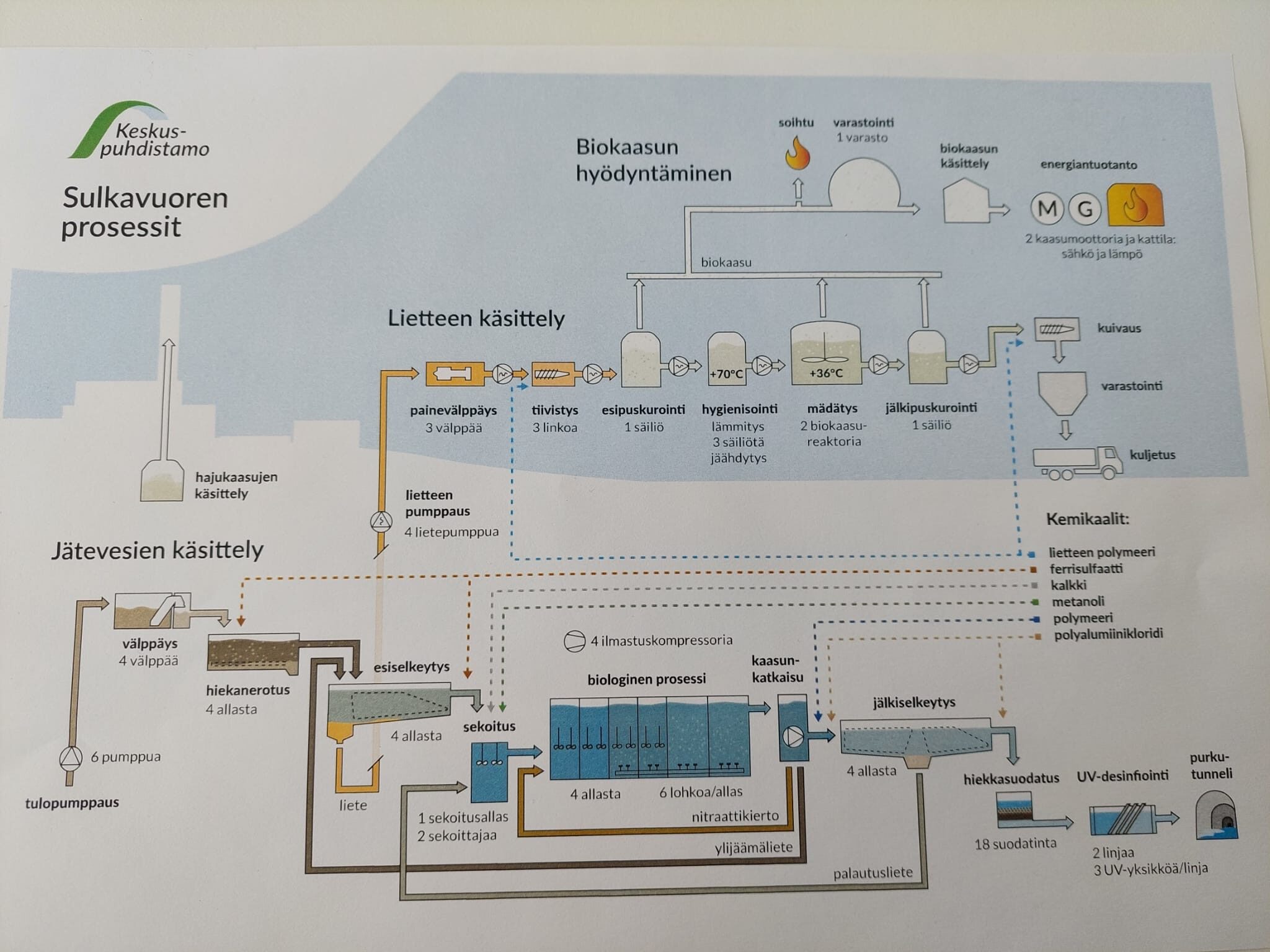 Pääsimme vierailemaan Tampereen Keskuspuhdistamolla Sulkavuoressa. Jätevesipuhdistamossa käsitellään lähikuntien (Kangasala, Lempäälä, Pirkkala, Tampere, Vesilahti ja Ylöjärvi) jätevesiä lähes 100000 m3 päivässä.