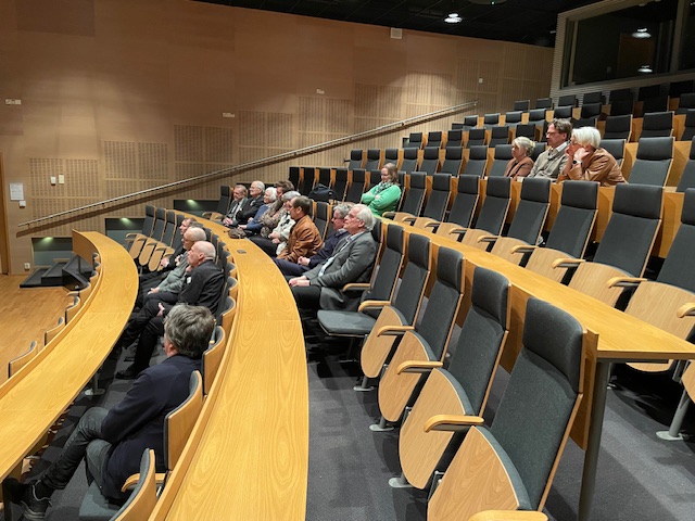 Raumalle saavuimme klo 11.00 ja nautimme lounasta Vanhan Rauman Kellari -nimisessä ravintolassa. Ydinvoimalalle mennessä jouduimme toteamaan kuin paljon tuhoa mereltä tuleva tuuli saa aikaan. Puunrunkoja oli sisäänajoväylän metsissä varmasti sadoittain. Meidät otti vastaan Mika Tanhuanpää, joka hoitaa yli 25 -vuoden kokemuksella voimalan vierailuja. Hän kertoi, että viikonloppuvieraiuja ei ole kuin muutama vuoden aikana – hienoa että pääsimme näin paikalle. Tulokahvit nautittuamme siirryimme auditorioon, jossa kuulimme esitystä ydinvoimalan synnystä nykypäivään. Kuten normaalia porukallamme oli esitettävänä paljon asiantuntevia kysymyksiä MT:lle. Lopuksi tutustuimme Vieras Centressä olevaan näyttelyyn ydinvoimalasta.