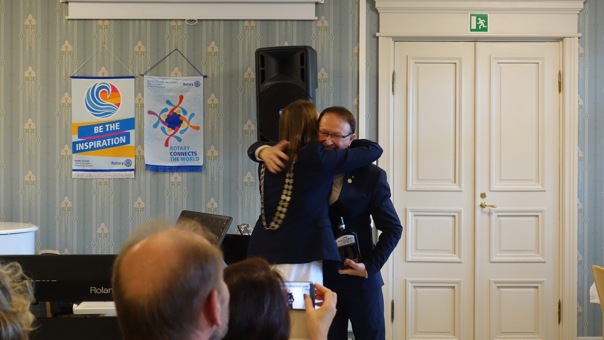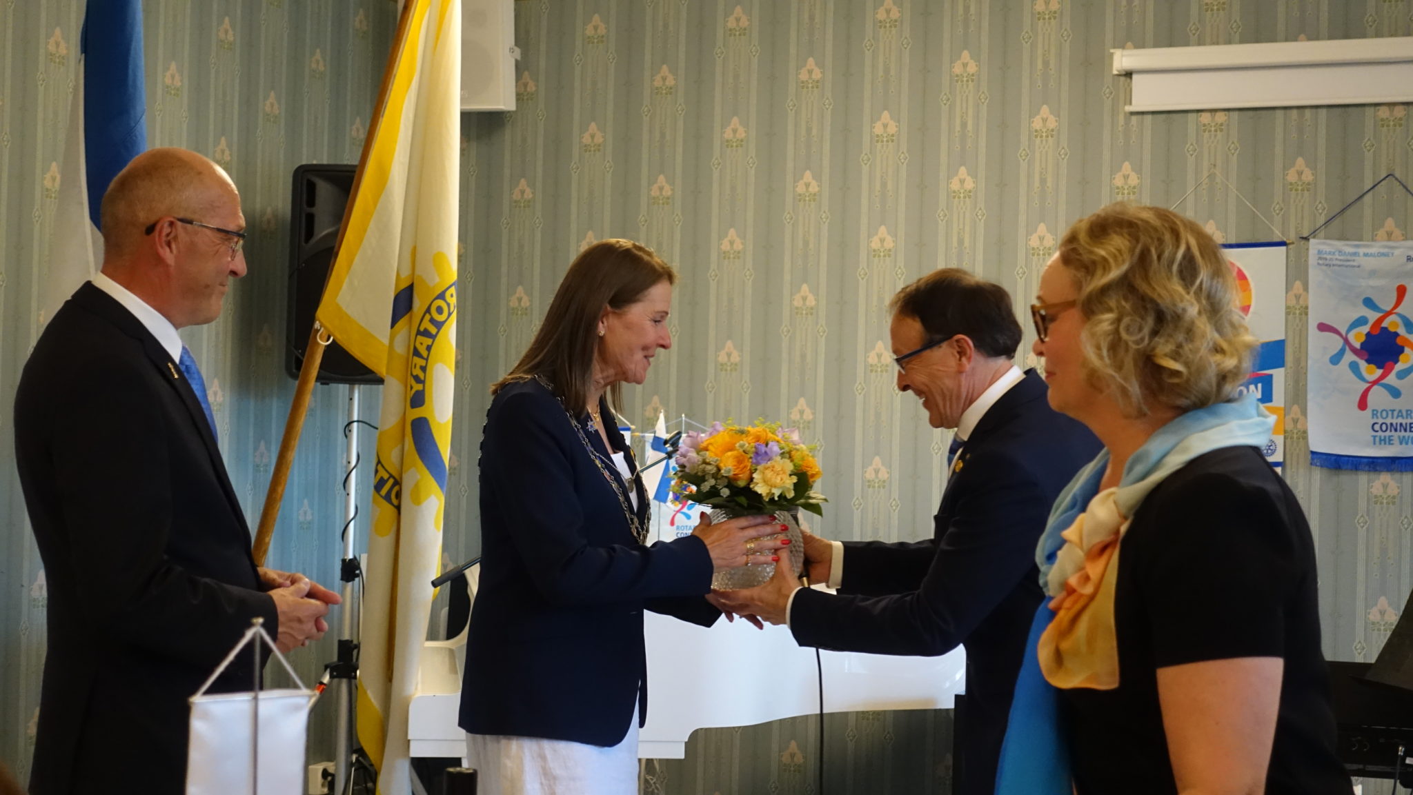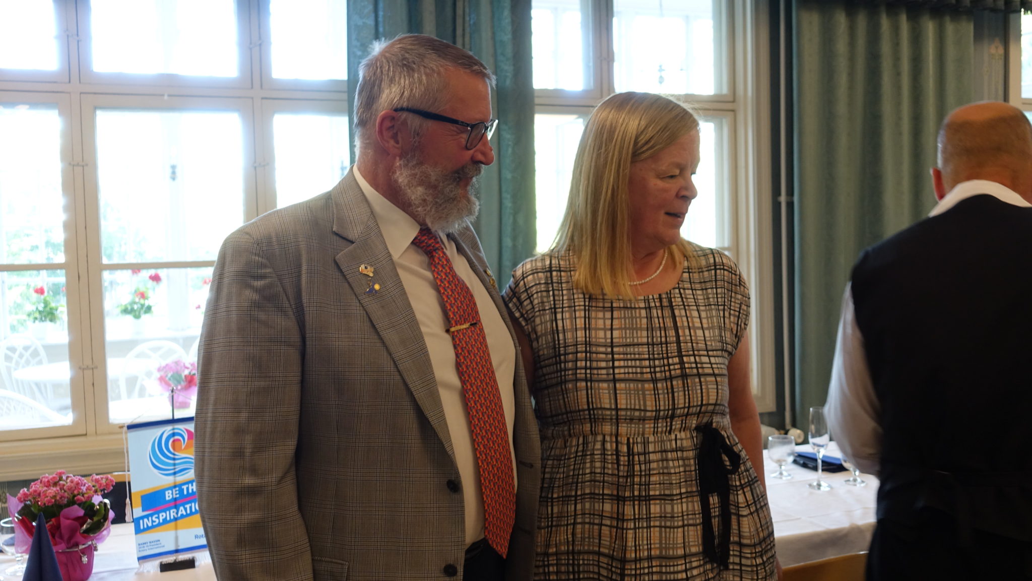 - DGN eli tulevan piirin 1385 kuvernööri 2021-2022 Kari Nirha partnerinsa Liisa Nirhan kanssa saivat Arjalta evästystä tulevaan.