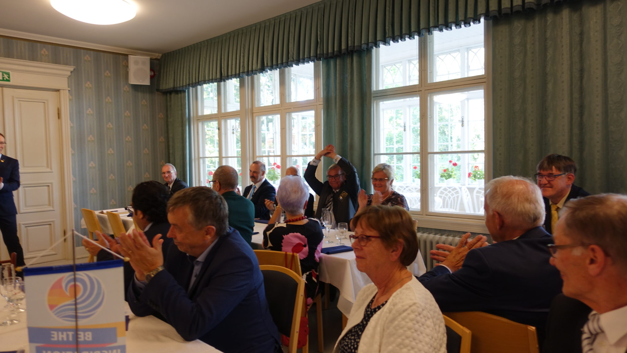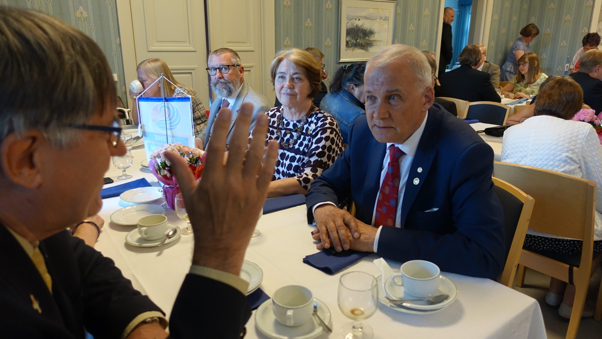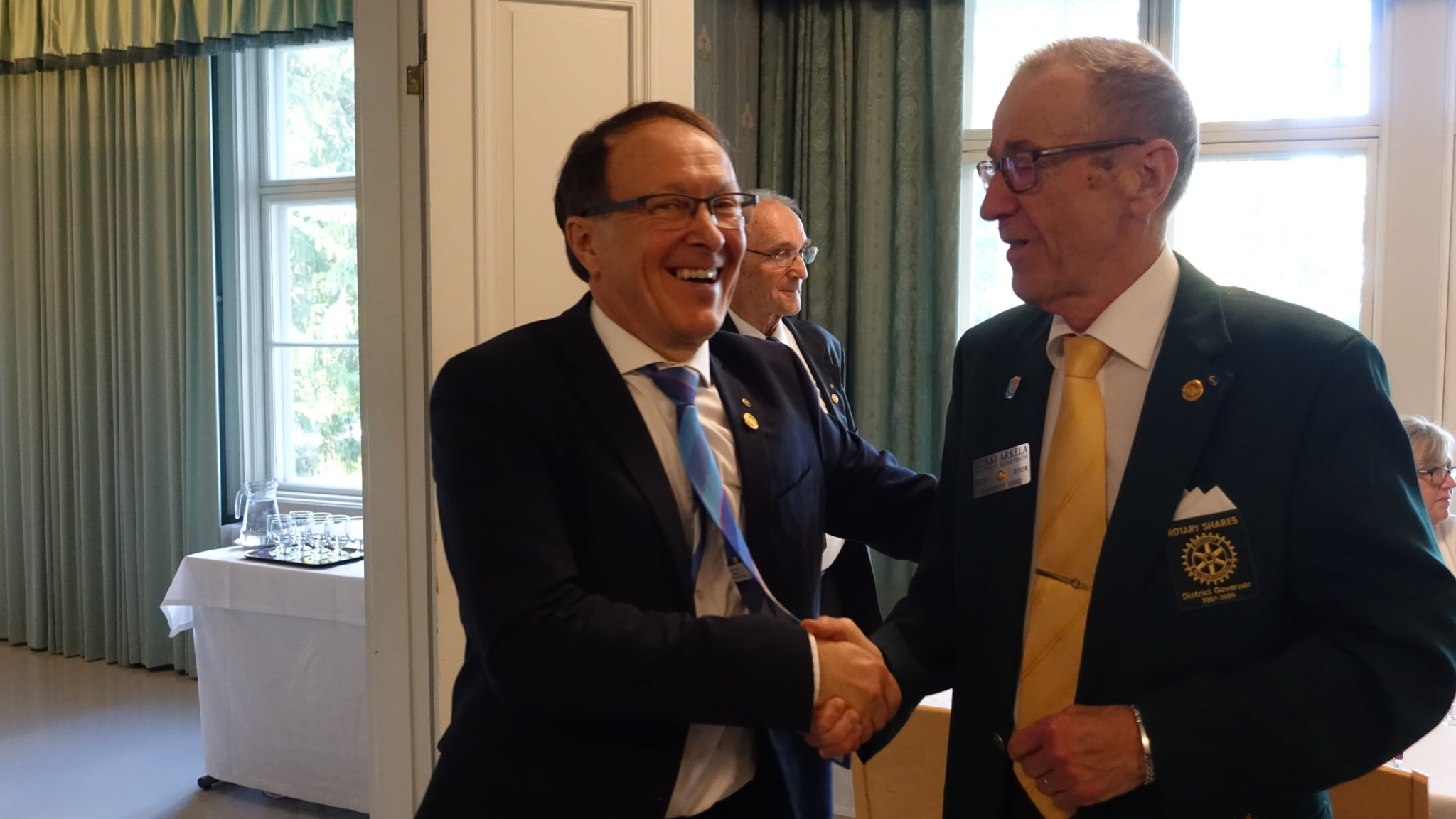 - DGN eli tulevan piirin 1385 kuvernööri 2021-2022 Kari Nirha partnerinsa Liisa Nirhan kanssa saivat Arjalta evästystä tulevaan.