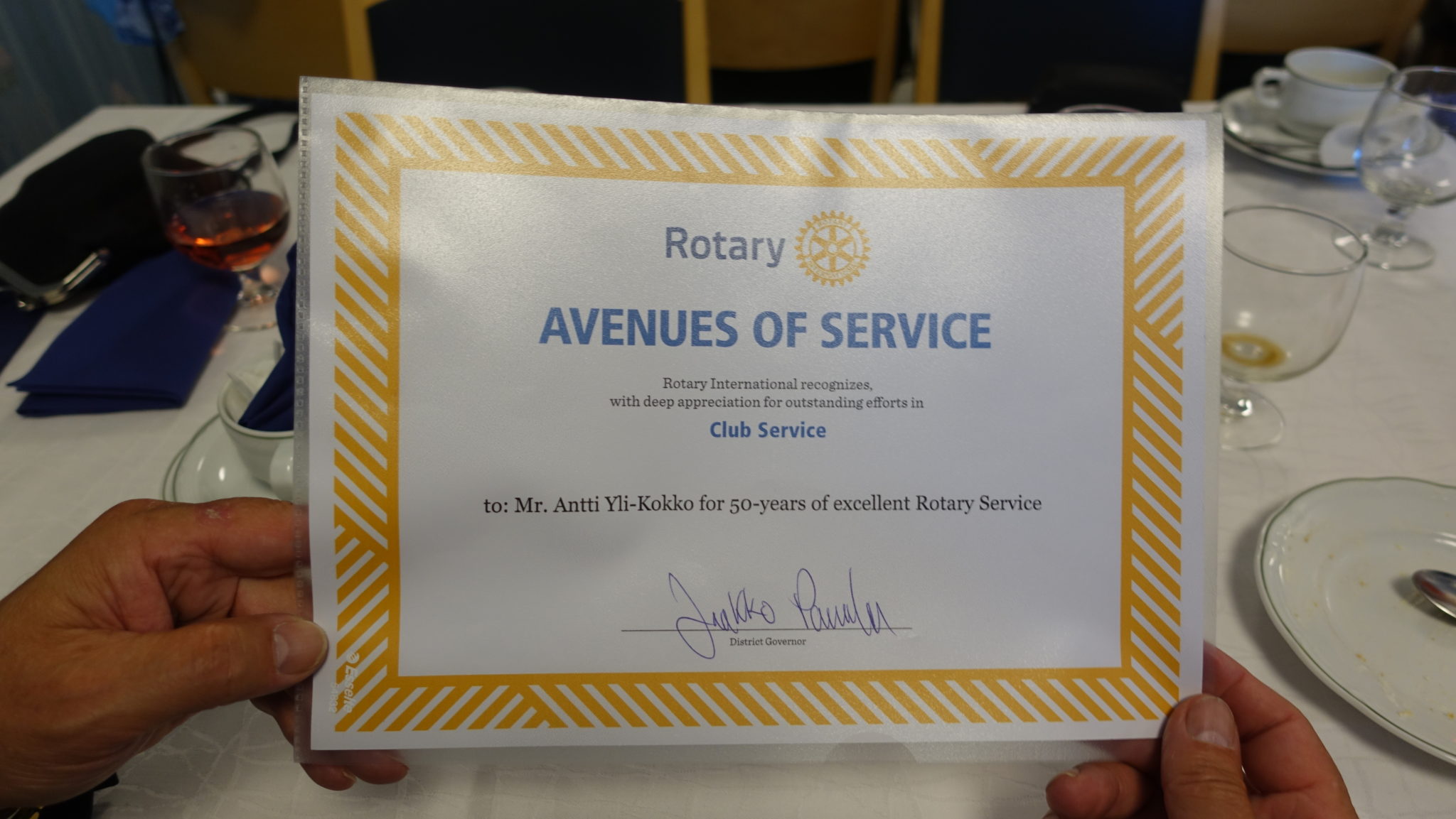 Kauhajoen Rotaryklubin presidentin käädyt vaihtuivat Kari Linnalle. Kauhajoen klubi huomioi myös Antti Yli-Kokon, joka on toiminut klubissa aktiivisesti jo 50 vuotta.