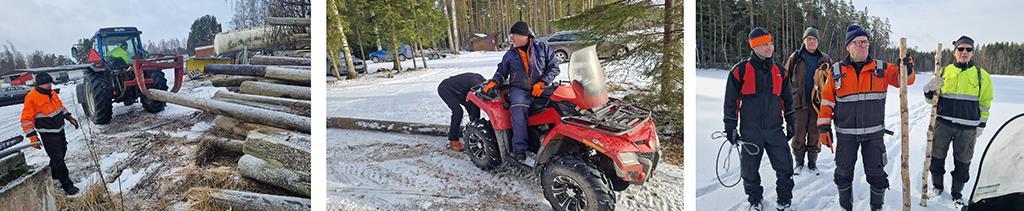 ne ensin traktorilla Ojutjärvelle ja siellä moottorikelkan ja mönkijän voimin jään yli tulevien sil-