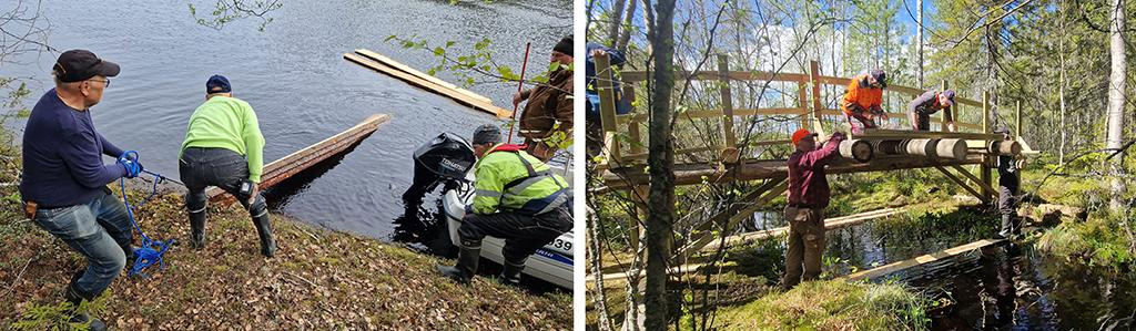 laisten porukka. Suunnitteluvaiheessa vitsailtiin, että silloista tehdään oikein kaarisiltoja. ”Siltainsinöörimme” Vuorisen Tapani ottikin haasteen vastaan ja kaarisiltoja sinne syntyikin. Kun-