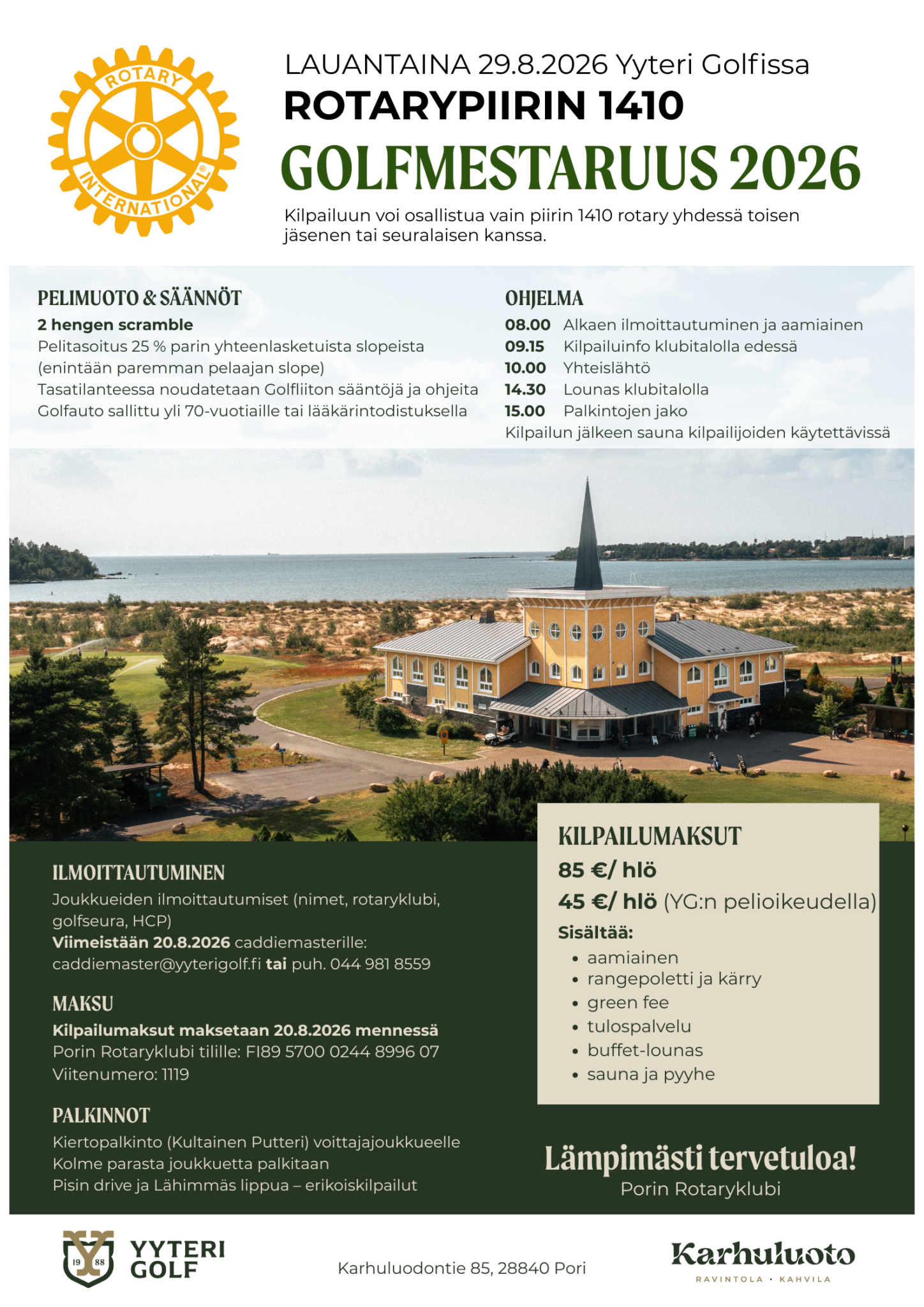 Rotarypiirin 1410 golfmestaruuskisa 29.8. Yyteri Golfissa