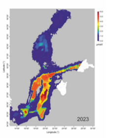 Dit är det ännu en bit kvar, vilket bland annat framgår av SYKE:s publicerade kartor över fosfor- och syrehalter vid botten i augusti 2023. I syrekartan betyder rött att botten är syrefri och blått att tillståndet är gott. Organiskt material som sjunkit till botten bryts ned, vilket förbrukar syre och frigör fosfor. Följande sommar binds fosforn åter i växande alger. Fosfortillförseln bör både bromsas från att rinna ut i vattendragen och samtidigt avlägsnas.