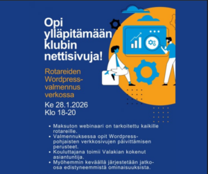 Klubien nettisivujen hoidon ja päivittämisen valmennus verkossa ke 28.01.2026 klo 18-20 kaikille nettisivuvastaaville ja asiasta kiinnostuneille10.1.2026Tässä ilmoittautumislinkki: Ilmoittautuminen nettisivuvalmennukseen