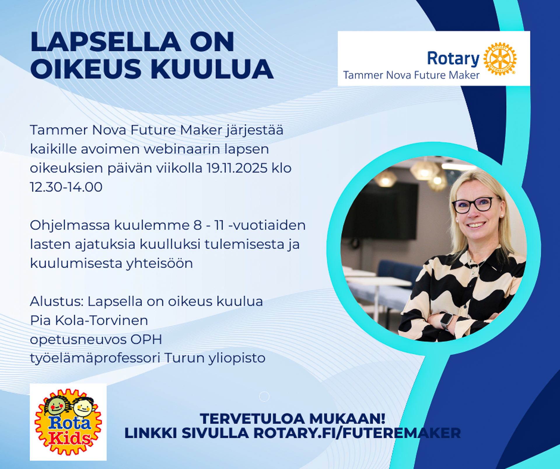 Tammer Nova Future Maker järjestää kaikille avoimen webinaarin Lasten oikeuksien viikolla 19.11. klo 12:30-14:00.