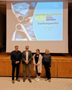 Kuva vanhempainillasta 26.1.2026. Kuvassa vasemmalta Huittisten Rotaryklubin Erkki Pitkänen, Huittisten Rotaryklubin presidentti Jouni Sihvonen, Ehyt ry:n kouluttaja Tarja Nevanperä ja rehtori Mari Westerberg.