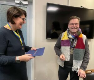 Tämän jälkeen presidentti ojensi PHF-mitalin Iina Chronsille ja Antero Hietamäelle. Tilaisuudessa oli 14 klubin jäsentä ja neljä avecia.