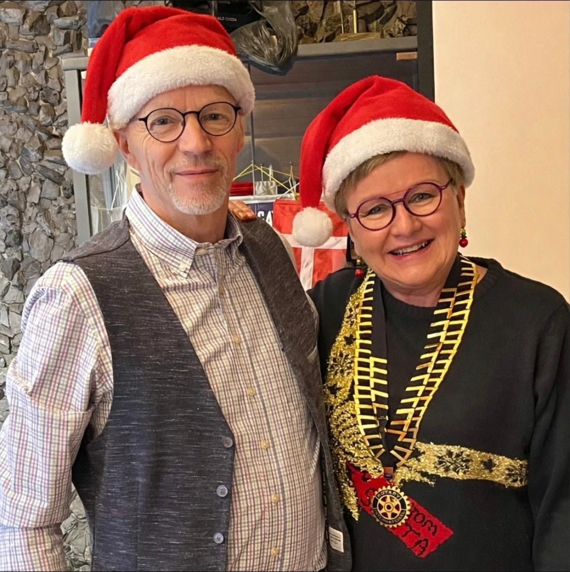 Kemin Rotaryklubin pressatonttu Arja ja sihteeritonttu Jukka toivottavat hyvää joulua!