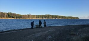 Roskiin liittyi varmaan monta tarinaa, mitähän kertoi pieni keltainen muovinen hävittäjäkone, muovisotilas, korkokenkä tai turvakenkä. Näitä kaikkia ihmettelemässä meitä rotareita oli 4 – 10 henkilöä, välillä mukana vierailijoita ulkomaita myöden. Klubimestarimme Markku oli aina säästä riippumatta kellontarkasti odottamassa meitä veneellään ja kuljettamassa salmen yli saareen. Roskien keräys ja luettelointi oli osa tärkeää tutkimustyötä, mutta samalla osa mukavaa ja yhteisöllistä klubipäivää.