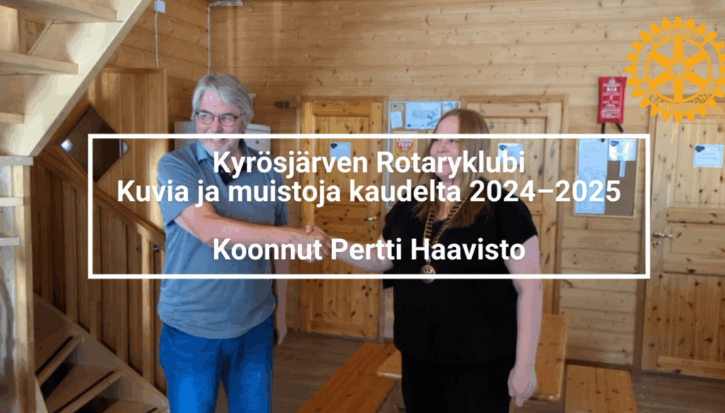 Kyrösjärven Rotaryklubin toimintakaudesta 2024–2025 on koottu kuvakavalkadi, joka esittelee klubin monipuolista toimintaa ja yhteisiä hetkiä kuluneelta vuodelta. Videolla nähdään otoksia kokouksista, vierailuista, projekteista, retkistä ja muista tapahtumista, jotka ovat rakentaneet yhteisöllisyyttä, palveluhenkeä ja vaikuttamista – rotarytoiminnan ytimessä.