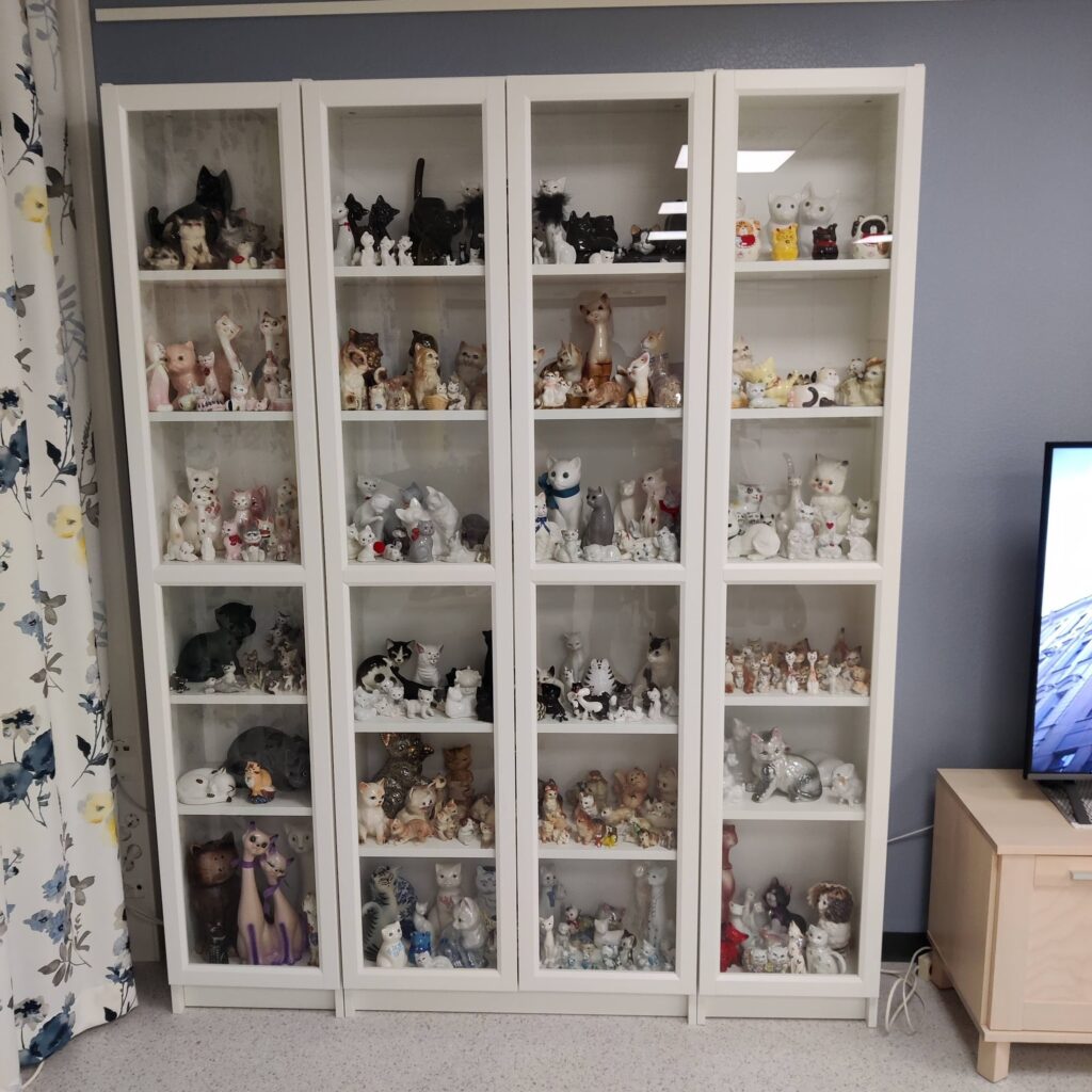 Klubin hankkimat neljä vitriiniä saivat sisällökseen upean, noin 500 posliinikissan kokoelman. Kokoelma on peräisin Eeva-Liisa ja Ilkka Häklin hyvältä ystävältä, Minna Heiskalalta.