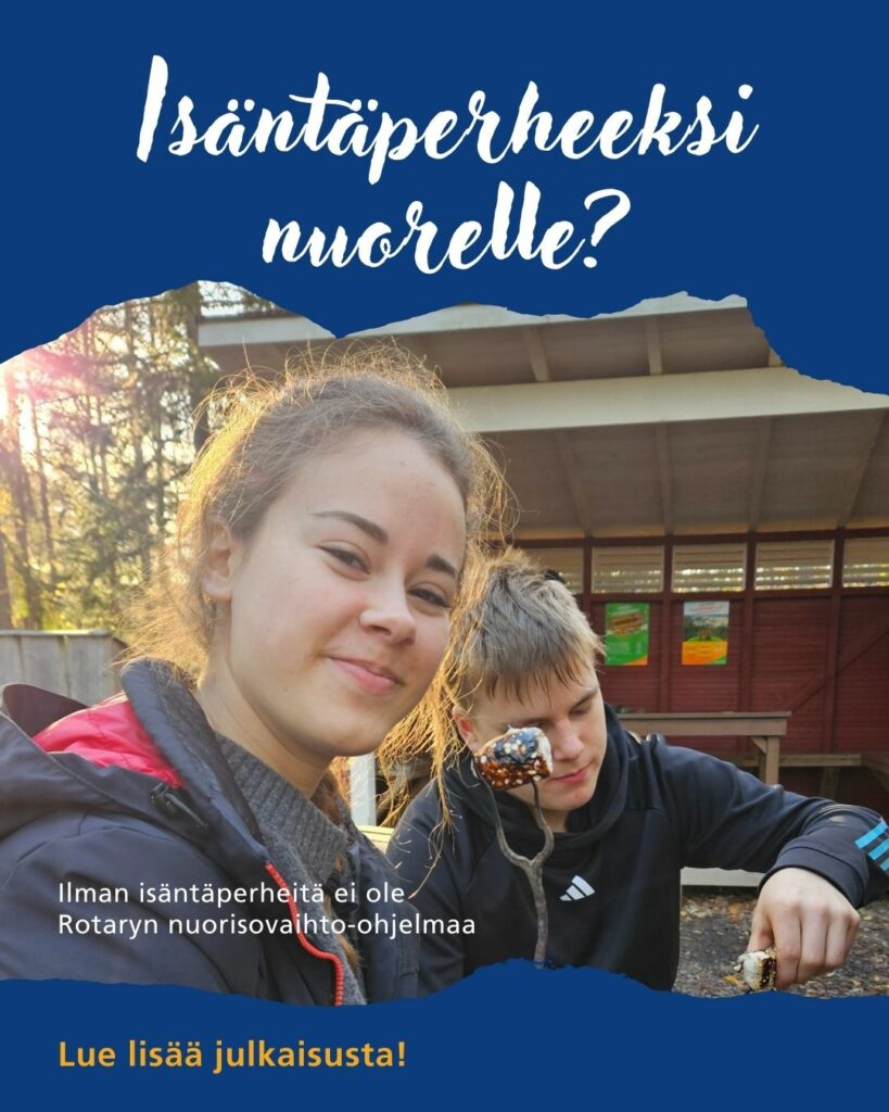 - Isäntäperheeksi 2026: Etsimme uusia isäntäperheitä elokuussa saapuville vaihto-oppilaille. Kuulet käytännönläheisesti, mitä nuoren asuminen perheessä vaatii ja mitä kaikkea se teille antaa.