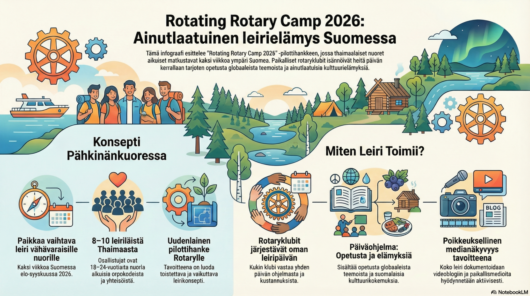 Rotating Rotary Camp (RRC) on uudenlainen, innovatiivinen lähestymistapa nuorisovaihtoon. Se ei ole vain leiri, vaan liikkeellä oleva elämys, joka tuo yhteen suomalaiset rotarit ja thaimaalaiset nuoret ainutlaatuisella tavalla.