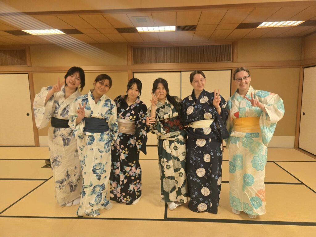 Teeseremonian yhteydessä vaihto-oppilaat saavat halutessaan pukea yukatan.