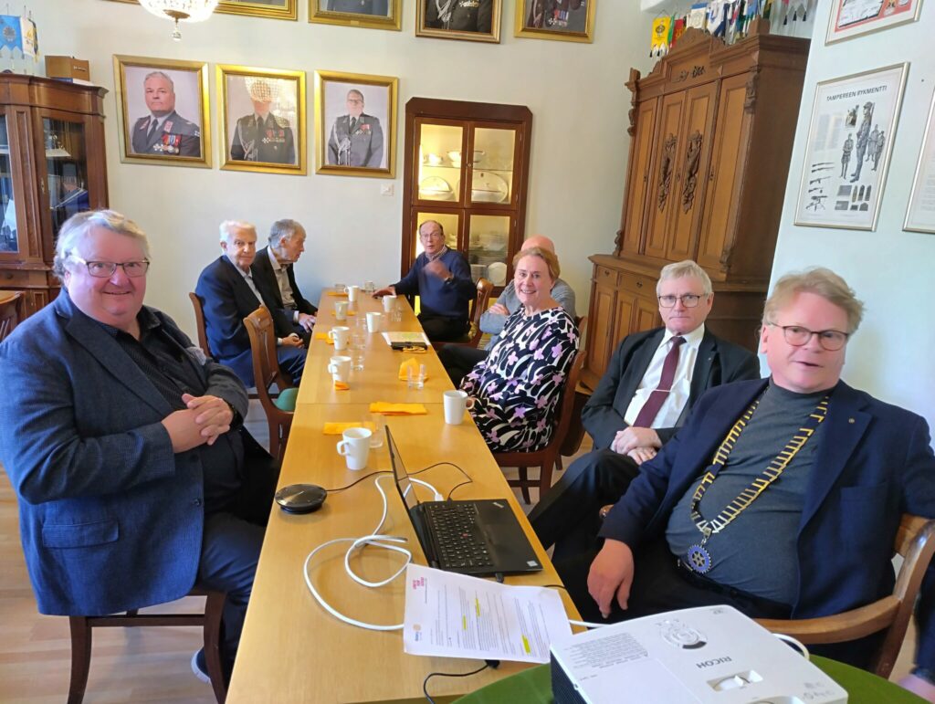 Kuvassa myös apulaiskuvernöörimme Tuula Vuorinen Sysmän rotaryklubista. Apulaiskuvernöörin kanssa keskustelimme tulevasta kuveröörin vierailusta ja sen aiheista. Tärkeimmäksi nousi, miten klubimme säilyy elinkelpoisena tulevina vuosina, kun jäsenten keski-ikä ei näytä laskevan. Siitä siis lisää 16.10.2025 tapaamisessa.
