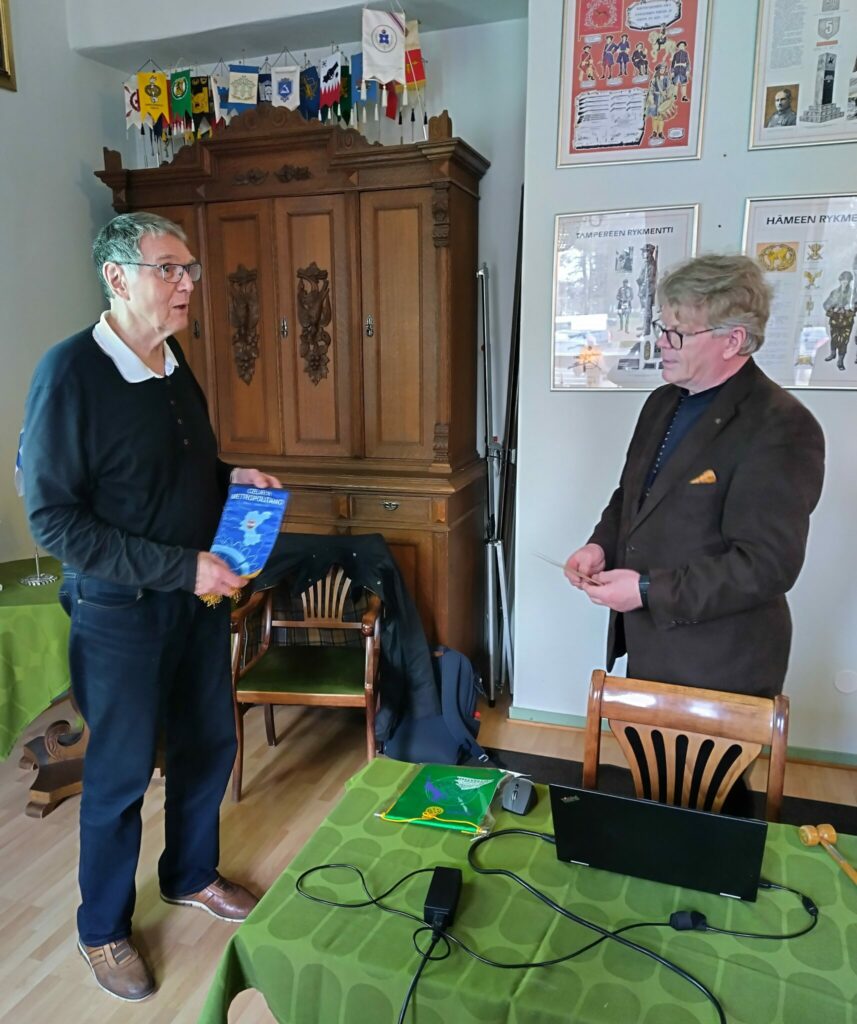Kokouksen aluksi vaihto-oppilaamme Asuka Kono luovutti lähettäneen klubin viirin ja kirjeen, sekä saimme Meksikosta vaihto-oppilaamme Aiko Jaakonsaaren tuoman hänen isäntäklubinsa viirin.