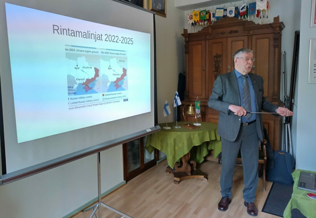 Tauno Aaltonen kertoi Ukrainan tilanteesta. Tässä muutamia avainsanoja esityksestä: rintama, droonit, turvatakuut.