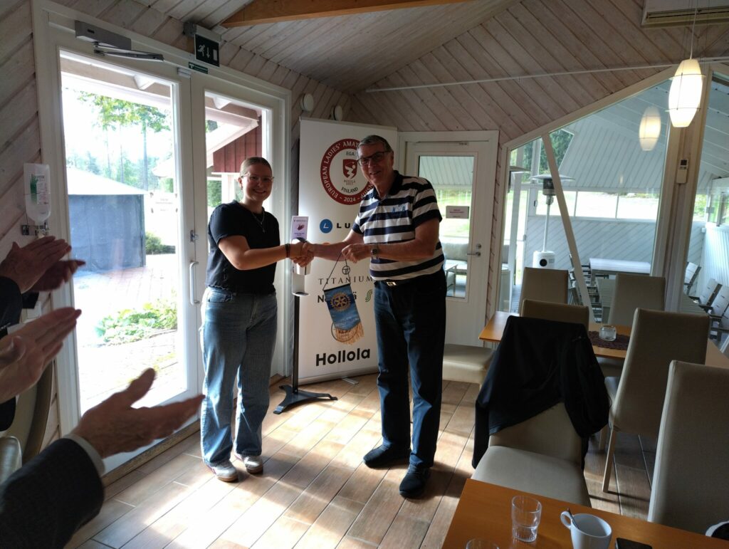 Aiko Jaakonsaari kävi luovuttamassa meksikolaisen isäntäklubinsa viirin kokouksen päätteeksi, ja klubi aplodeerasi sen kunniaksi.