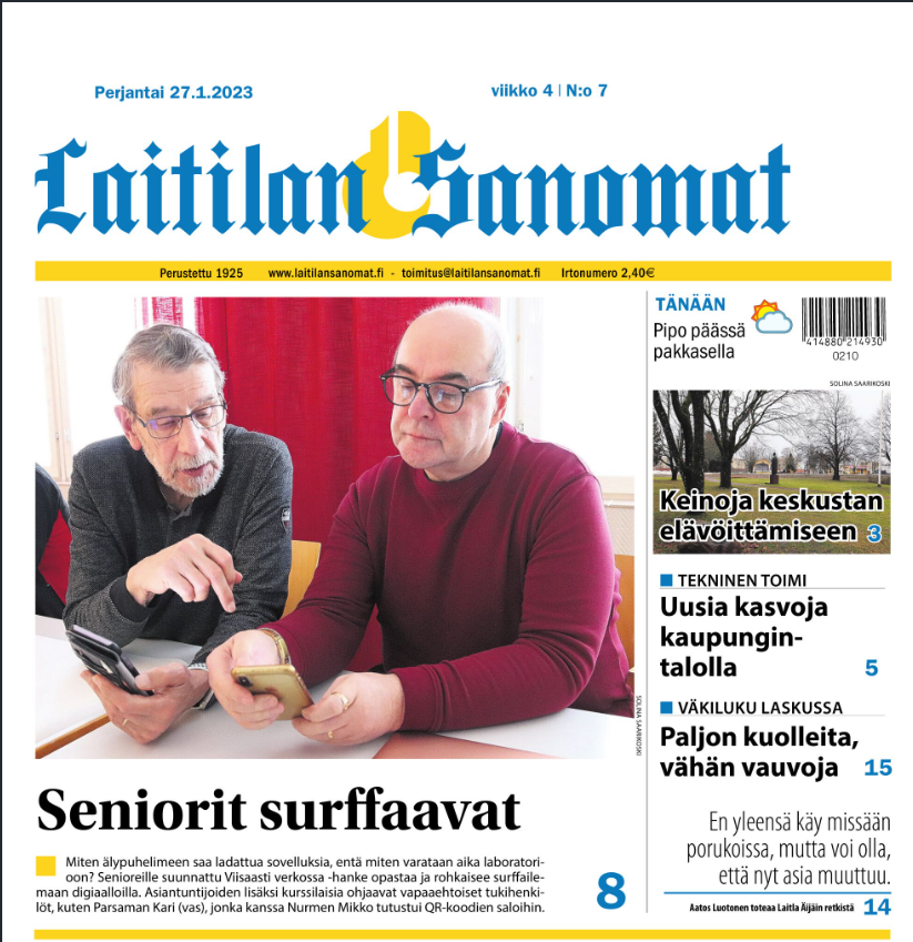Piiriapurahan ja oman rahoituksemme turvin toteutimme rotaryvuonna 2022-2024 projektin ”Viisaampana verkossa”. Projektin tarkoituksena oli aktivoida ja kannustaa yli 65-vuotiaita digitaalisten palveluiden käyttöön. Kahdeksan kokoontumiskerran kokonaisuuteen osallistui keskimääräin kymmenen henkeä. Osallistujien antama palaute oli ylistävää ja tällaiselle toiminnalle on selvästi todellista tarvetta. Projektilla saimme myös mainiota näkyvyyttä sosiaalisessa mediassa ja paikallislehdessä.