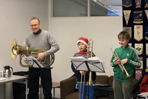 | Vuoden viimeinen klubitapaaminen kokosi Lauttasaaren rotaryt ja heidän seuralaistensa yhteen lämminhenkisen joululounaan äärelle Loru-ravintolassa Lauttasaaressa. Perinteiset jouluruuat, hyvä seura ja kiireetön yhdessäolo loivat rauhallisen hetken pysähtyä kuluneen vuoden äärelle. Joulun tunnelmaa syvensi LMO:n vaskitrio, joka rehtorin johdolla johdatti kuulijat tuttujen joululaulujen maailmaan. Tilaisuudessa Ritva Ohmeroluoma Tikkurilan klubista ojensi presidentillemme Hannu Luotoselle kiitoksen arvokkaasta työstä Mieli ry:n Nuori Mieli -koulutusten järjestämisessä. Vaihto-oppilaamme Carla toi terveisensä perinteisten Perulaisten leivonnaisten muodossa ja arpajaisilla kerättiin varoja Lauttasaaren koululaisten tukemiseksi. Joululounaan myötä oli luontevaa laskeutua joulun viettoon ja kääntää katse kohti uutta vuotta. Lauttasaaren rotaryklubi toivottaa rauhallista ja valoa täynnä olevaa joulua kaikille! 🌟 (kuvat esiintyjistä julkaistu rehtorin luvalla) | ![]()