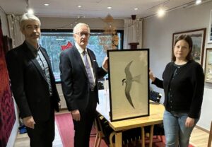 Lauttasaaren senioritalo täytti kuluvana vuonna 50 vuotta ja Lauttasaaren rotaryklubi 70 vuotta. Merkkivuosien kunniaksi presidentti Hannu Luotonen ja varapresidentti Timo Ylikangas luovuttivat kunniajäsenemme graafikko Erik Bruunin Tiiran senioritalon toiminnanjohtaja Krista Hellströmille.