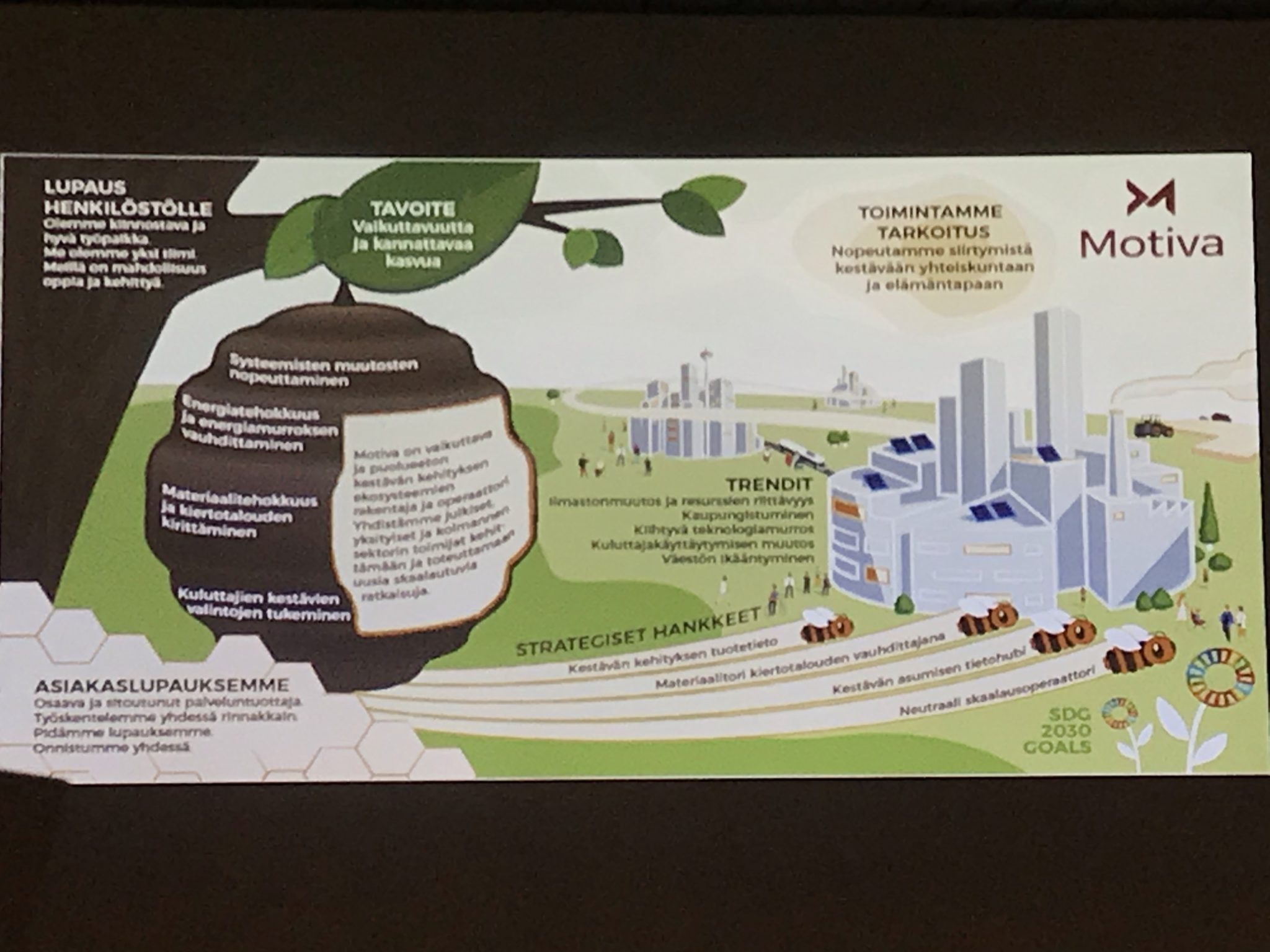Motivan toimitusjohtaja Vesa Silfver esitteli Motivan roolia tulevaisuuden rakentajana juuri päivitetyn strategian pohjalta. Strategian päivitysprosessi oli organisaatiota ja ekosysteemejä osallistava. Prosessista voi lukea lisää Vesan LinkedIn blogista