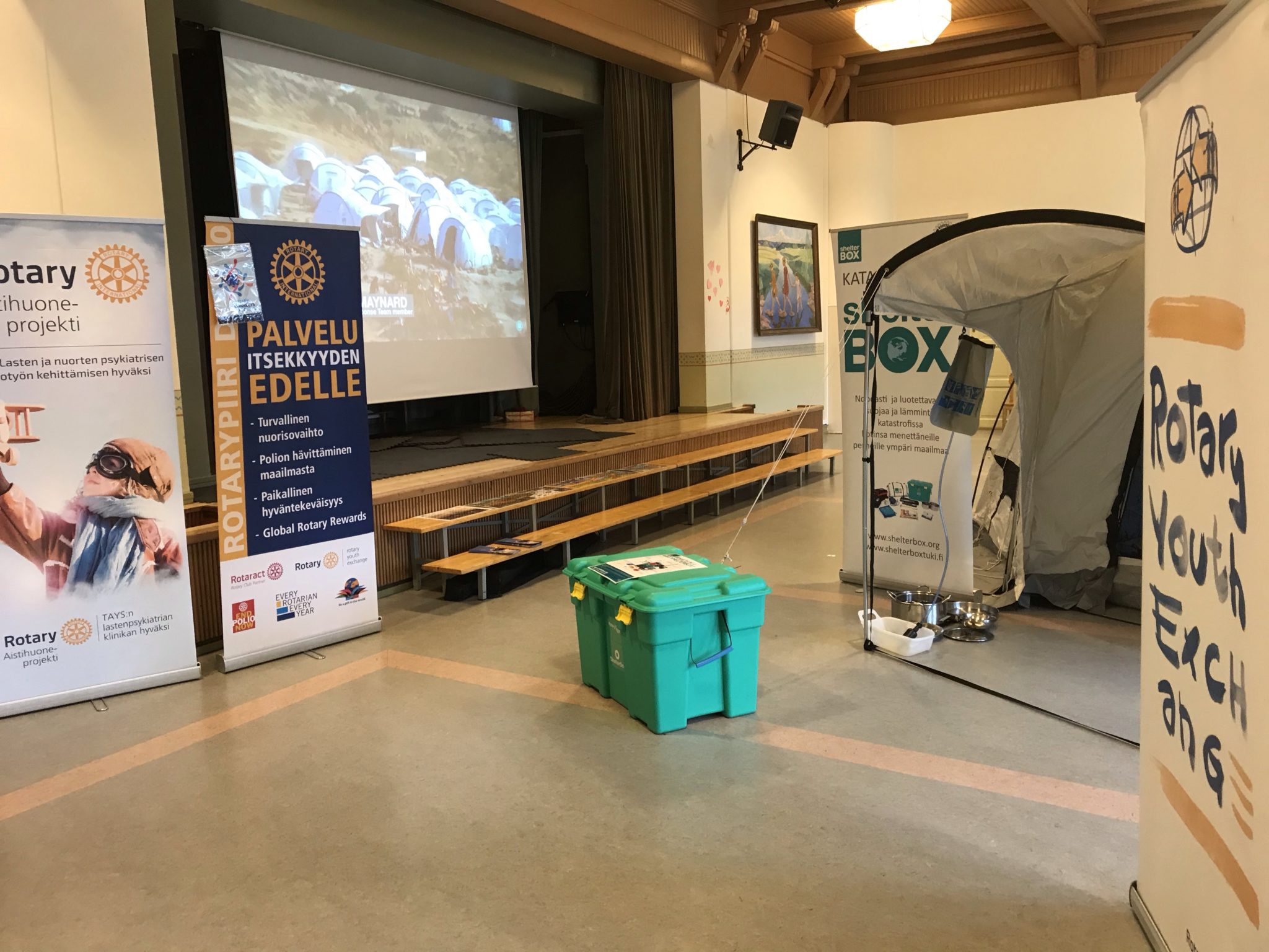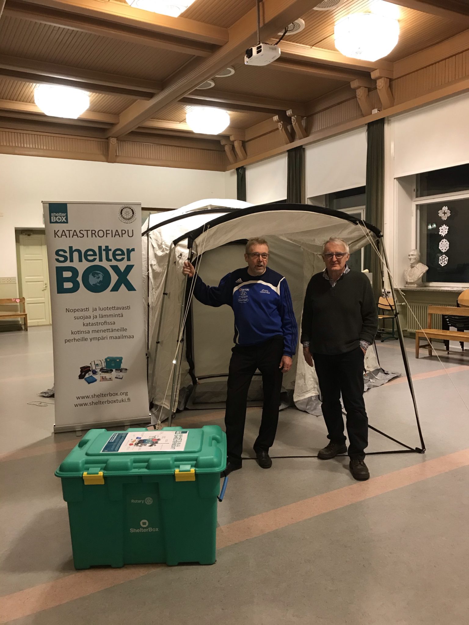 Rotarypisteellä esittelemme esimerkkiä katastrofialueille toimitettavista Shelter Box hätäapusuojista varusteineen.