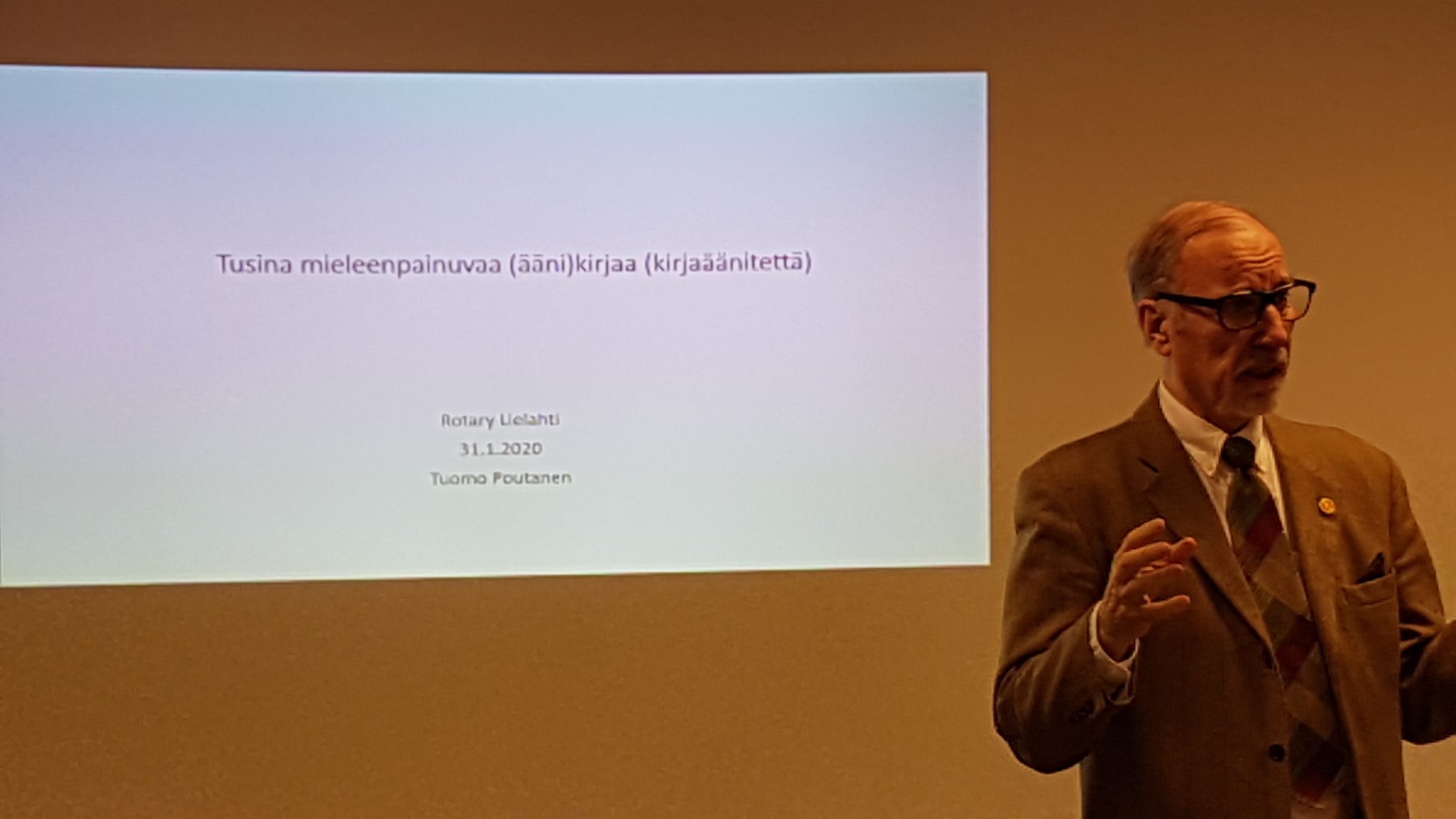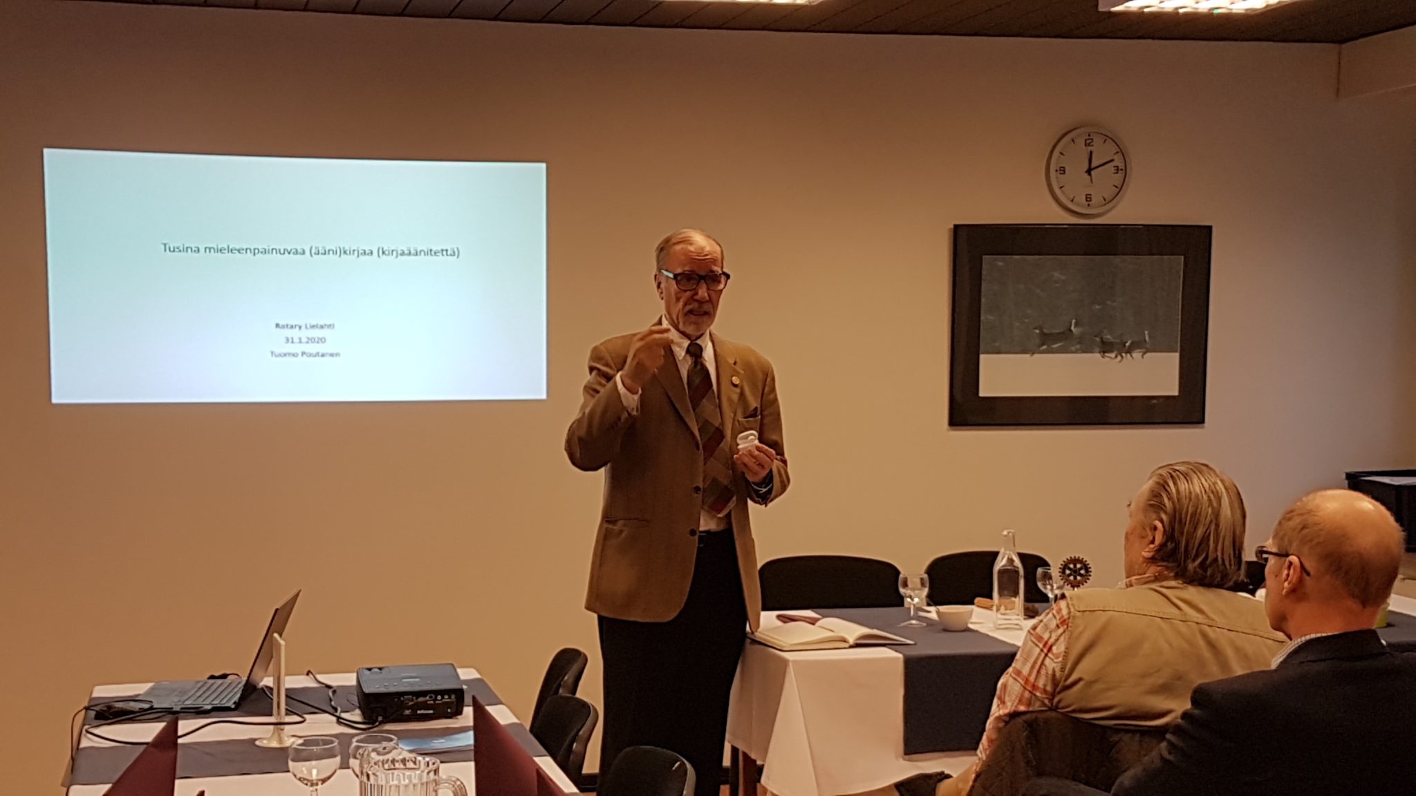 Veli Tuomo Poutanen avasi kokemuksia äänikirjoista ja antoi ”lukuvinkkejä” rotareille.