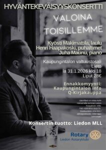 Konsertin tuotto menee Liedon MLL:lle lietolaisten nuorten tulemiseen.
