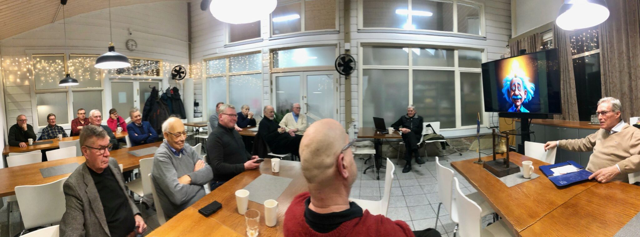 26.11.2025 Ideasta ja tutkimuksesta kirjaksi. Markku Hämäläinen kertoili tuotteliaasta toiminnastaan sukututkimuksen parissa. Kuulimme hänen isänsä suvun historiasta Karjalan kannaksella ja äitinsä suvusta Pohjanmaalla. Mukaan mahtui Turun suunnalta levinnyttä pappissukuakin. Tutkiako isoa kokonaisuutta tai jakaa työ osiin ja mikä on hyvä sukututkimusohjelma? Nekin selvisivät meille 17 mukana olleelle, samoin veli Markun laaja tuotanto sukututkimusalalta.