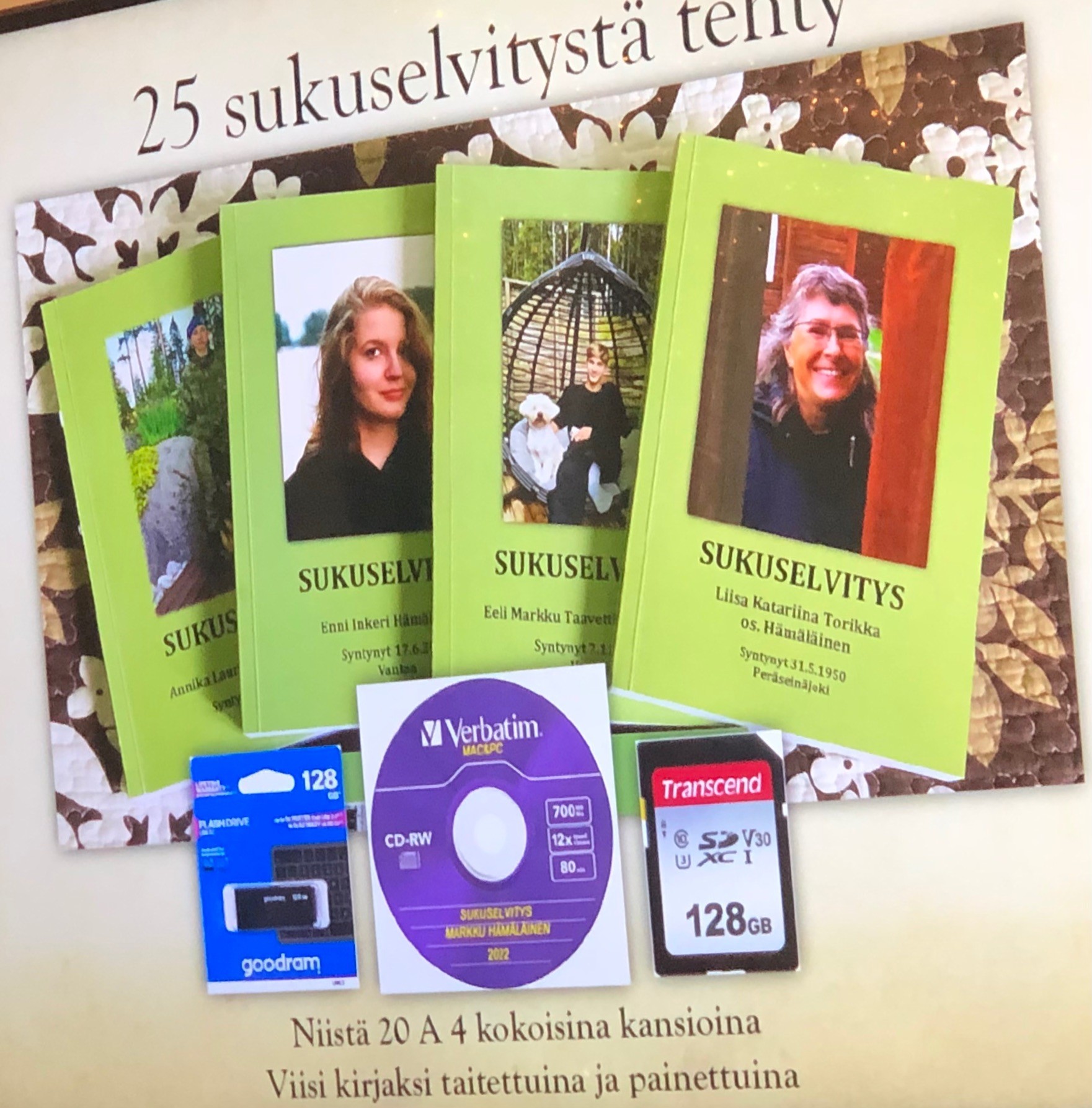 Tässä pieni osa kirjailija ja runoilija (jos näin voi sanoa) Markku Hämäläisen sukututkimuskirjoista.