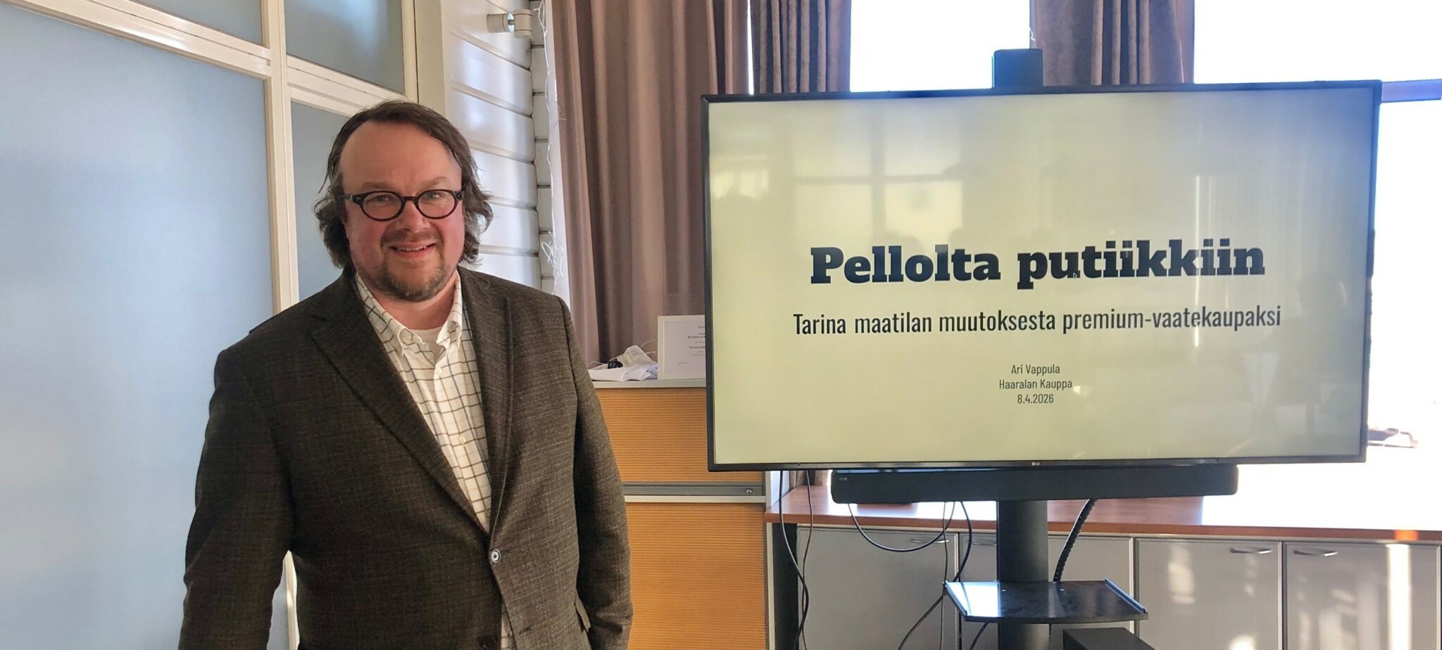 kiintoisen ja innostavan alustuksen. Ari ja vaimonsa Satu ovat tehneet unelmistaan totta. 1500-luvulla perustettu maatila kasvoi yli 400 hehtaarin kokoiseksi ja pariskunta halusi jotain uutta. Haaralan tilan navetasta syntyi 4000 tuotetta käsittävä premium vaatekauppa. Kestäviä ja korkealaatuisia country lifestyle vaatteita työhön, vapaa-aikaan ja harrastuksiin naisille sekä miehille. Yli puolet myynnistä tapahtuu paikanpäällä. Kannattaa käydä tutustumassa.