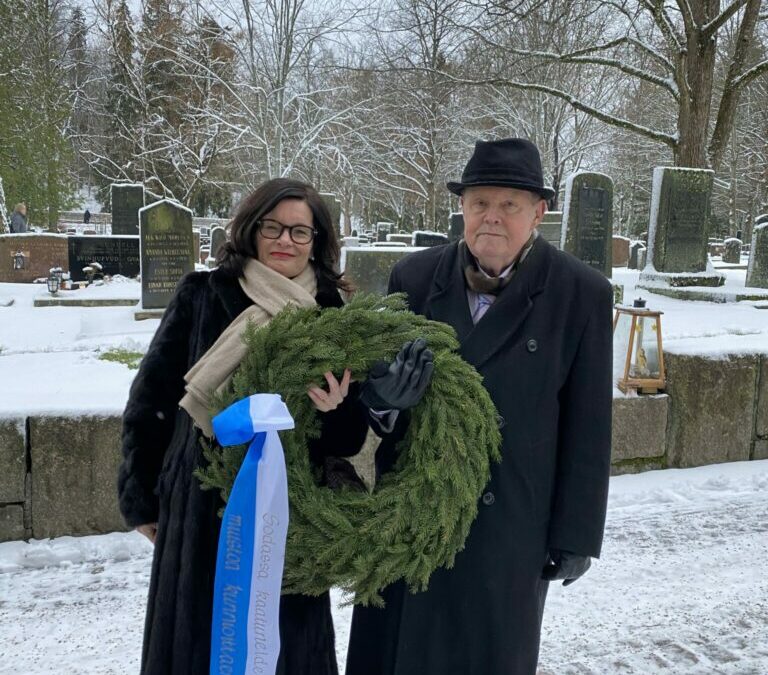 Itsenäisyyspäivän perinteenä on klubissamme ollut sotiemme veteraanien kunnioittaminen ja seppeleenlasku Espoon tuomiokirkon hautausmaan sankarihaudoille. Tänä vuonna klubimme presidentti Maria Sipilä ja rotarysäätiöasiamies Teuvo Metsäpelto laskivat seppeleen.