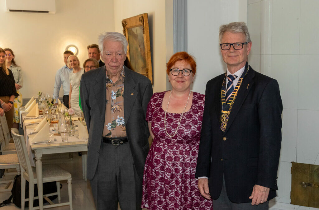 Meri-Espoon Rotaryklubi kokoontui Bodomin kartanoon rotaryvuoden päätösillalliseen 12.6. Tilaisuudessa väistyvät presidentit Heidi Kinnunen Kanta-Espoon rotaryklubista ja Mauri Rantanen Espoo Meri klubista luovuttivat presidentin käädyt uudelle presidentille Pekka Saukkoselle.