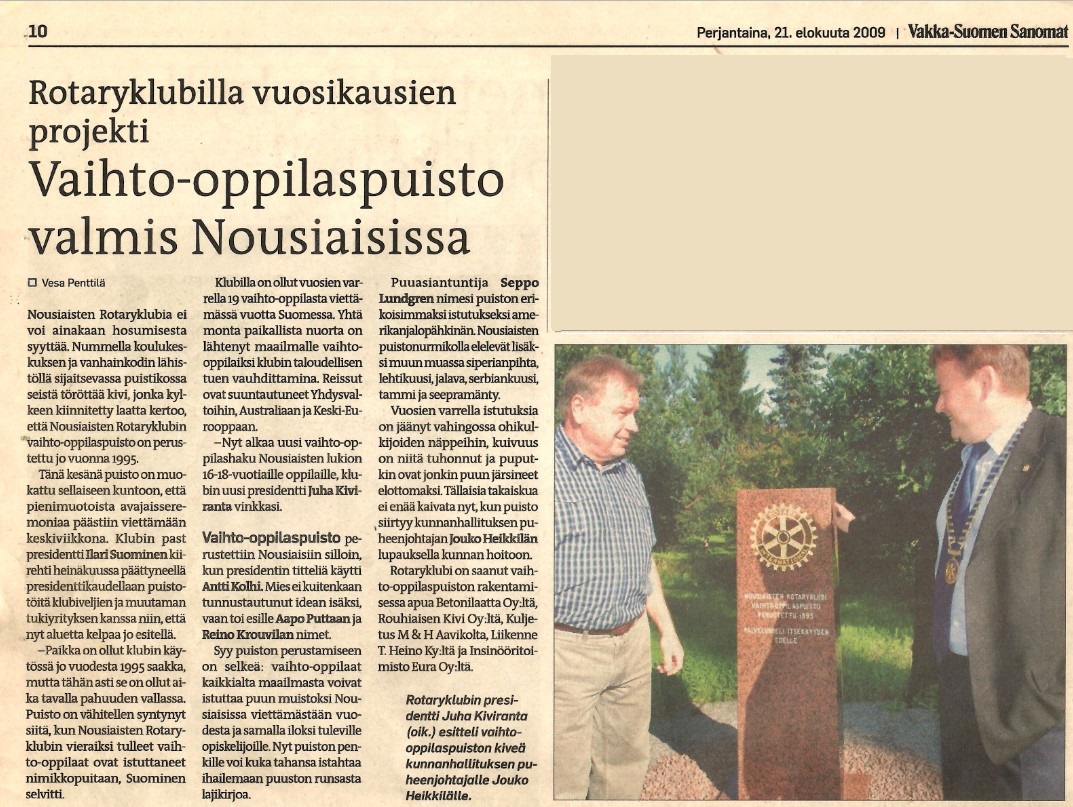 Nousiaisten Rotaryklubi on vuodesta 1995 alkaen istuttanut jokaiselle Nousiaisiin tulleelle ulkomaiselle vaihto-oppilaalle puun rotarypuistoon. Puisto sijaitsee Nousiaisissa osoitteessa Oikotie 2.
