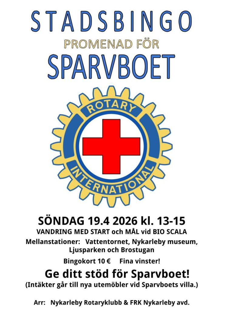 Vandring med start och mål vid Scala. Mellanstationer: Vattentornet, Nykarleby museum, Ljusparken och Brostugan. Bingokort 10€. Fina vinster!