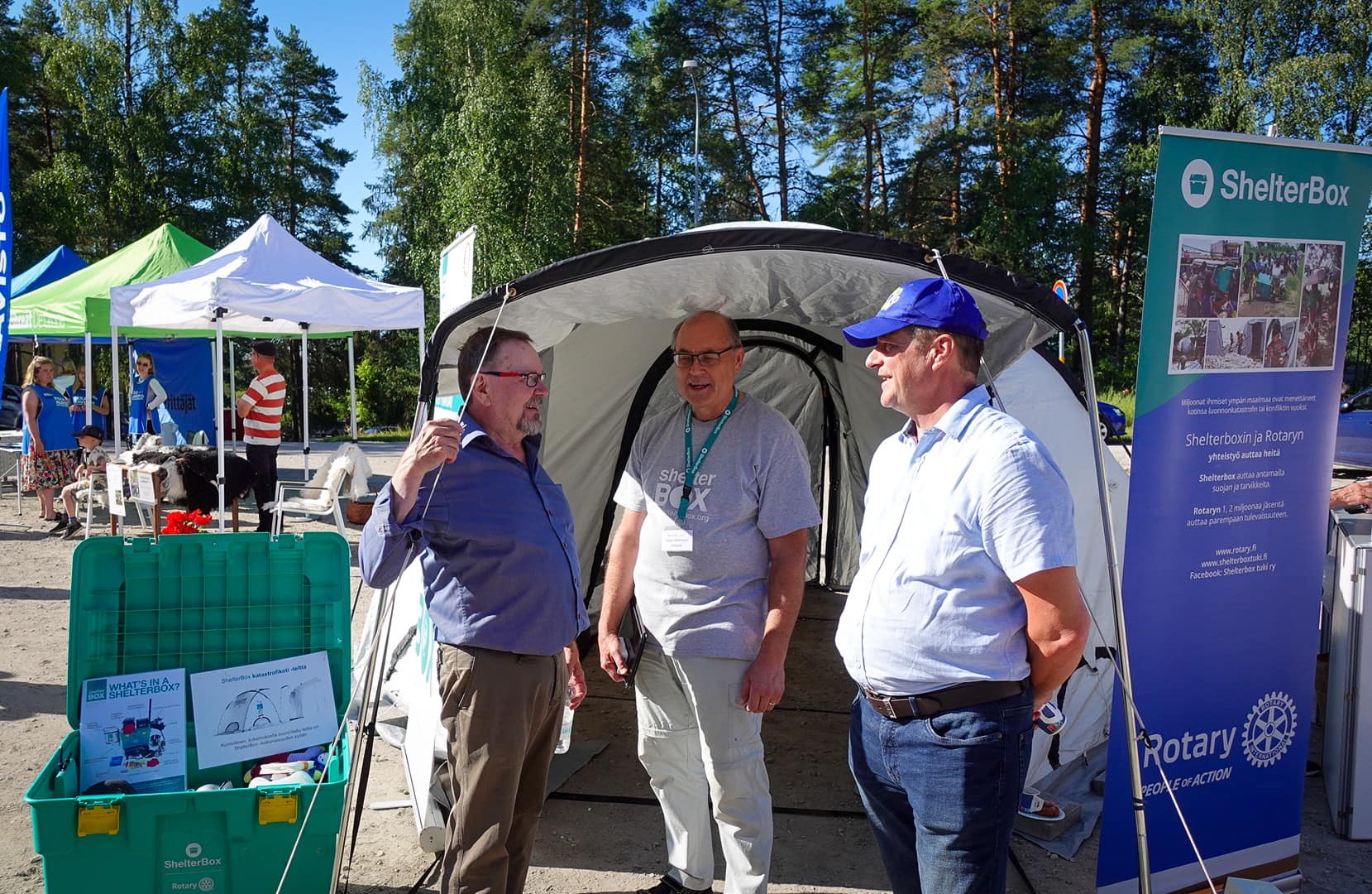 - Hannu Härkönen, Tapio Vihersaari ja Pekka Uusitalo sekä ShelterBox-teltta