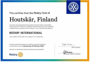 On 2nd February 2026 a new club joined our global network and Houtskärs Rotaryklubb received their charter document. Locating in the beautiful archipelago the club is going to have a significant role in the local community.
