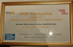 Tammer Novan Future Maker -satelliittiklubin Rotakidsin Patikkapolkupohja on palkittu PHF -tunnustuksella piirikonferenssissa. Tunnustus tuli erityisestä toimesta, omistautumisesta ja vaikutuksesta.