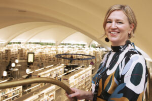 Tampereen kirjastopalvelujohtaja Niina Salmenkangas kertoo klubissamme kirjastostaan. Salmenkankaan motto on ”Demokratia, sananvapaus, vuorovaikutus, avoin tiedonkulku ja tasavertaisuus”